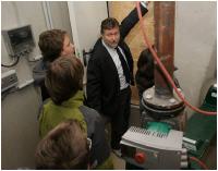 Zur Inbetriebnahme der Pellet-Kesselanlage begrüßte Rektor Stefan Kley Anfang November neben dem Bürgermeister auch Klaus Hilger von der Bauabteilung sowie Vertreter des Ingenieurbüros Pertz aus Saarbrücken sowie des Architektenbüros Gesell-Kriesten-Partner aus Andernach. „Ich hätte nicht gedacht, dass die Zusammenarbeit mit den Betrieben so ausgezeichnet abläuft“, lobte der Schulleiter, „der Schulbetrieb wurde praktisch nicht gestört.“ Im Gegenteil: die energetische Erneuerung wird sogar zum Thema des Unterrichts. Physiklehrerin Kathrin Mader und Schüler der 9. Klasse waren beim Start mit von der Partie. „Im Physik-Unterricht nehmen wir die Technik genau in Augenschein, auch die Reduzierung klimaschädlicher Emissionen wird dabei thematisiert“, erklärte die Pädagogin.