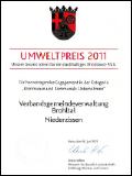 „Unsere besten Ideen für ein nachhaltiges Rheinland-Pfalz"- unter diesem Motto hat die rheinland-pfälzische Umweltministerin Ulrike Höfken am 06. Juni 2011 in der Mainzer Staatskanzlei den Umweltpreis 2011 in der Kategorie „Kommunen und Kommunale Unternehmen" an den Bürgermeister der Verbandsgemeinde Brohltal für ihre energieeffiziente Sanierung ihrer realschule plus überreicht. |